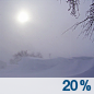 Temperature: -1°F Wind Speed: 14 mph Wind Direction: NW Forecast: A slight chance of snow. Mostly cloudy, with a low around -1. Northwest wind around 14 mph. Chance of precipitation is 20%. |