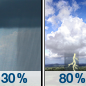 Temperature: 80°F Wind Speed: 5 mph Wind Direction: N Forecast: Showers and thunderstorms likely before 1pm, then a chance of showers and thunderstorms. Mostly sunny, with a high near 80. North wind around 5 mph. Chance of precipitation is 70%. |