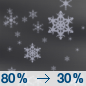 Temperature: 14°F Wind Speed: 6 to 10 mph Wind Direction: W Forecast: Snow before 5am. Mostly cloudy, with a low around 14. Chance of precipitation is 80%. |