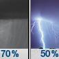 Temperature: 74°F Wind Speed: 10 to 15 mph Wind Direction: SW Forecast: Rain showers likely. Mostly cloudy, with a high near 74. Chance of precipitation is 70%. |