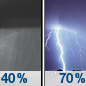 Temperature: 36°F Wind Speed: 10 to 15 mph Wind Direction: SSW Forecast: Rain likely and a slight chance of thunderstorms. Mostly cloudy, with a low around 36. Chance of precipitation is 70%. |