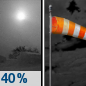 Temperature: 40°F Wind Speed: 2 to 7 mph Wind Direction: SW Forecast: Sunny, with a high near 40. |