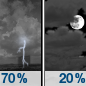 Temperature: 47°F Wind Speed: 0 to 5 mph Wind Direction: SE Forecast: Showers and thunderstorms likely before 11pm. Mostly cloudy. Low around 47, with temperatures rising to around 49 overnight. Southeast wind 0 to 5 mph. Chance of precipitation is 70%. New rainfall amounts less than a tenth of an inch possible. |