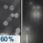 Temperature: 34°F Wind Speed: 2 to 9 mph Wind Direction: N Forecast: Freezing drizzle likely and patchy freezing fog before 8am. Mostly cloudy, with a high near 34. North wind 2 to 9 mph. |