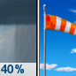 Temperature: 64°F Wind Speed: 16 to 21 mph Wind Direction: N Forecast: A chance of rain showers before 7am. Sunny, with a high near 64. Chance of precipitation is 40%. |