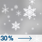 Temperature: 36°F Wind Speed: 20 to 25 mph Wind Direction: NW Forecast: A chance of snow. Mostly cloudy, with a high near 36. Chance of precipitation is 30%. |