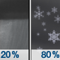 Temperature: 41°F Wind Speed: 10 to 20 mph Wind Direction: NW Forecast: A chance of snow showers before 5pm. Mostly cloudy, with a high near 41. Northwest wind 10 to 20 mph. Chance of precipitation is 70%. New snow accumulation of less than half an inch possible. |