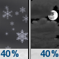 Temperature: 37°F Wind Speed: 7 mph Wind Direction: SE Forecast: A chance of rain and snow. Cloudy, with a high near 37. Chance of precipitation is 40%. |