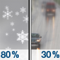 Temperature: 39°F Wind Speed: 6 mph Wind Direction: W Forecast: A chance of rain and snow showers before 7am. Mostly sunny, with a high near 39. Chance of precipitation is 30%. |