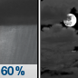 Temperature: 21°F Wind Speed: 0 to 5 mph Wind Direction: N Forecast: Mostly cloudy, with a low around 21. North wind 0 to 5 mph. |