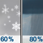 Temperature: 22°F Wind Speed: 5 to 25 mph Wind Direction: W Forecast: A chance of snow showers. Mostly cloudy, with a low around 22. West wind 5 to 25 mph. Chance of precipitation is 40%. New snow accumulation of less than half an inch possible. |