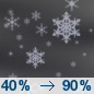 Temperature: 14°F Wind Speed: 5 to 10 mph Wind Direction: NW Forecast: A chance of snow. Mostly cloudy, with a low around 14. |
