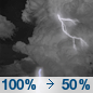 Temperature: 46°F Wind Speed: 6 to 10 mph Wind Direction: S Forecast: Showers and thunderstorms before 11pm, then a chance of showers and thunderstorms between 11pm and 4am. Mostly cloudy. Low around 46, with temperatures rising to around 53 overnight. South wind 6 to 10 mph, with gusts as high as 21 mph. Chance of precipitation is 100%. New rainfall amounts between a quarter and half of an inch possible. |
