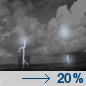 Temperature: 54°F Wind Speed: 5 to 15 mph Wind Direction: S Forecast: Isolated showers and thunderstorms after 7pm. Partly cloudy. Low around 54, with temperatures rising to around 63 overnight. South wind 5 to 15 mph. Chance of precipitation is 20%. |
