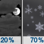Temperature: 23°F Wind Speed: 7 to 14 mph Wind Direction: SW Forecast: A chance of snow after midnight. Mostly cloudy. Low around 23, with temperatures rising to around 28 overnight. Southwest wind 7 to 14 mph, with gusts as high as 22 mph. Chance of precipitation is 70%. New rainfall amounts less than a tenth of an inch possible. |