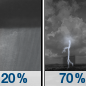 Temperature: 52°F Wind Speed: 5 to 28 mph Wind Direction: ENE Forecast: A slight chance of rain showers between 11pm and midnight, then showers and thunderstorms likely between midnight and 4am. Mostly cloudy, with a low around 52. East northeast wind 5 to 28 mph, with gusts as high as 44 mph. Chance of precipitation is 70%. New rainfall amounts less than a tenth of an inch possible. |
