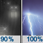 Temperature: 54°F Wind Speed: 16 to 22 mph Wind Direction: S Forecast: Rain before 2am, then showers and thunderstorms likely between 2am and 5am, then a chance of rain. Mostly cloudy. Low around 54, with temperatures rising to around 56 overnight. South wind 16 to 22 mph, with gusts as high as 31 mph. Chance of precipitation is 100%. |