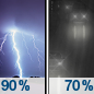 Temperature: 38°F Wind Speed: 6 mph Wind Direction: S Forecast: Showers and thunderstorms before 8pm, then rain. Cloudy. Low around 38, with temperatures rising to around 40 overnight. South wind around 6 mph. Chance of precipitation is 90%. New rainfall amounts between a half and three quarters of an inch possible. |