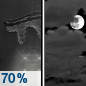 Temperature: 58°F Wind Speed: 9 to 17 mph Wind Direction: SW Forecast: Rain showers likely. Mostly cloudy, with a high near 58. Chance of precipitation is 70%. |