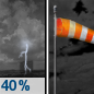 Temperature: 75°F Wind Speed: 14 to 24 mph Wind Direction: SW Forecast: A slight chance of showers and thunderstorms between 10am and 11am, then a chance of showers and thunderstorms between 11am and 1pm, then a chance of showers and thunderstorms between 1pm and 2pm, then showers and thunderstorms likely between 2pm and 4pm, then a chance of showers and thunderstorms. Partly sunny. High near 75, with temperatures falling to around 61 in the afternoon. Southwest wind 14 to 24 mph, with gusts as high as 33 mph. Chance of precipitation is 70%. New rainfall amounts between a tenth and quarter of an inch possible. |