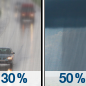 Temperature: 55°F Wind Speed: 2 to 6 mph Wind Direction: N Forecast: A chance of rain showers before 7pm, then a chance of rain between 7pm and 9pm. Mostly cloudy, with a low around 55. North wind 2 to 6 mph. Chance of precipitation is 40%. |