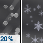 Temperature: 13°F Wind Speed: 5 mph Wind Direction: NNW Forecast: Partly cloudy, with a low around 13. |