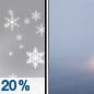 Temperature: 34°F Wind Speed: 8 mph Wind Direction: N Forecast: A chance of snow. Mostly cloudy, with a high near 34. North wind around 8 mph. |