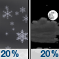 Temperature: 20°F Wind Speed: 5 mph Wind Direction: W Forecast: A slight chance of rain and snow before 7pm. Mostly clear, with a low around 20. |