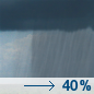 Temperature: 71°F Wind Speed: 7 to 12 mph Wind Direction: SSE Forecast: A slight chance of rain showers between 8am and 2pm, then showers and thunderstorms likely. Partly sunny, with a high near 71. |