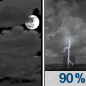 Temperature: 51°F Wind Speed: 9 to 14 mph Wind Direction: SSE Forecast: Showers and thunderstorms after 2am. Mostly cloudy. Low around 51, with temperatures rising to around 55 overnight. South southeast wind 9 to 14 mph, with gusts as high as 28 mph. Chance of precipitation is 90%. New rainfall amounts between a quarter and half of an inch possible. |