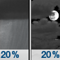 Temperature: 64°F Wind Speed: 6 mph Wind Direction: E Forecast: Isolated rain showers before midnight. Mostly cloudy, with a low around 64. East wind around 6 mph. Chance of precipitation is 20%. |