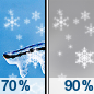 Temperature: 26°F Wind Speed: 5 mph Wind Direction: N Forecast: Snow likely and patchy fog before 2am. Mostly cloudy, with a low around 26. North wind around 5 mph. Chance of precipitation is 70%. New snow accumulation of 1 to 2 inches possible. |