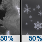 Temperature: 36°F Wind Speed: 10 mph Wind Direction: ENE Forecast: A slight chance of rain and snow showers. Mostly cloudy, with a low around 36. |