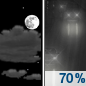 Temperature: 45°F Wind Speed: 2 to 12 mph Wind Direction: W Forecast: Rain showers likely. Mostly cloudy, with a high near 45. Chance of precipitation is 70%. |