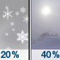 Temperature: 22°F Wind Speed: 15 to 20 mph Wind Direction: N Forecast: A chance of snow. Mostly cloudy, with a high near 22. |