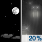 Temperature: 33°F Wind Speed: 2 to 7 mph Wind Direction: WNW Forecast: A slight chance of rain after 2am. Mostly clear, with a low around 33. |