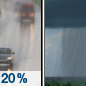 Temperature: 4°F Wind Speed: 10 to 15 mph Wind Direction: W Forecast: A slight chance of snow. Mostly cloudy, with a low around 4. Chance of precipitation is 20%. |