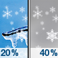Temperature: 35°F Wind Speed: 5 to 15 mph Wind Direction: SW Forecast: A chance of snow after 7am. Mostly cloudy, with a high near 35. Chance of precipitation is 30%. |