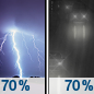 Temperature: 41°F Wind Speed: 6 to 9 mph Wind Direction: S Forecast: Showers and thunderstorms likely before 8pm, then rain likely. Mostly cloudy, with a low around 41. |