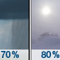 Temperature: 12°F Wind Speed: 7 to 12 mph Wind Direction: W Forecast: Snow showers. Mostly cloudy, with a low around 12. Chance of precipitation is 80%. New snow accumulation of 1 to 3 inches possible. |