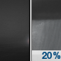 Temperature: 20°F Wind Speed: 5 mph Wind Direction: N Forecast: Partly cloudy, with a low around 20. North wind around 5 mph. |