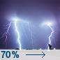Temperature: 45°F Wind Speed: 10 to 15 mph Wind Direction: N Forecast: Showers and thunderstorms. Mostly cloudy, with a low around 45. North wind 10 to 15 mph. Chance of precipitation is 70%. New rainfall amounts between a half and three quarters of an inch possible. |