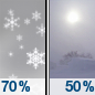 Temperature: 33°F Wind Speed: 17 to 22 mph Wind Direction: NW Forecast: Snow likely before 1pm, then a chance of snow and patchy blowing snow. Cloudy. High near 33, with temperatures falling to around 30 in the afternoon. Northwest wind 17 to 22 mph, with gusts as high as 32 mph. Chance of precipitation is 70%. New snow accumulation of less than one inch possible. |