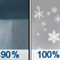 Temperature: 17°F Wind Speed: 10 to 15 mph Wind Direction: NNW Forecast: Snow showers likely before 4am. Mostly cloudy, with a low around 17. North northwest wind 10 to 15 mph, with gusts as high as 25 mph. Chance of precipitation is 70%. New snow accumulation of less than half an inch possible. |