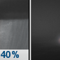 Temperature: 40°F Wind Speed: 9 to 14 mph Wind Direction: N Forecast: A chance of snow. Mostly cloudy, with a high near 40. Chance of precipitation is 40%. |