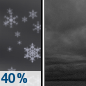 Temperature: 33°F Wind Speed: 3 to 9 mph Wind Direction: WSW Forecast: A chance of snow after 7am. Mostly cloudy, with a high near 33. |