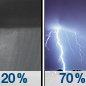 Temperature: 64°F Wind Speed: 10 mph Wind Direction: S Forecast: A slight chance of showers and thunderstorms after 7pm. Mostly cloudy, with a low around 64. Chance of precipitation is 20%. |