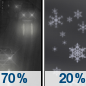 Temperature: 18°F Wind Speed: 15 to 25 mph Wind Direction: WNW Forecast: Rain likely before midnight, then a slight chance of rain and snow. Mostly cloudy, with a low around 18. |