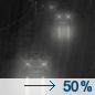 Temperature: 53°F Wind Speed: 0 to 5 mph Wind Direction: ESE Forecast: Mostly cloudy, with a low around 53. East southeast wind 0 to 5 mph. |