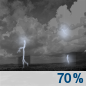 Temperature: 40°F Wind Speed: 10 to 14 mph Wind Direction: SSW Forecast: Rain likely and a chance of thunderstorms. Mostly cloudy, with a low around 40. South southwest wind 10 to 14 mph, with gusts as high as 22 mph. Chance of precipitation is 70%. |